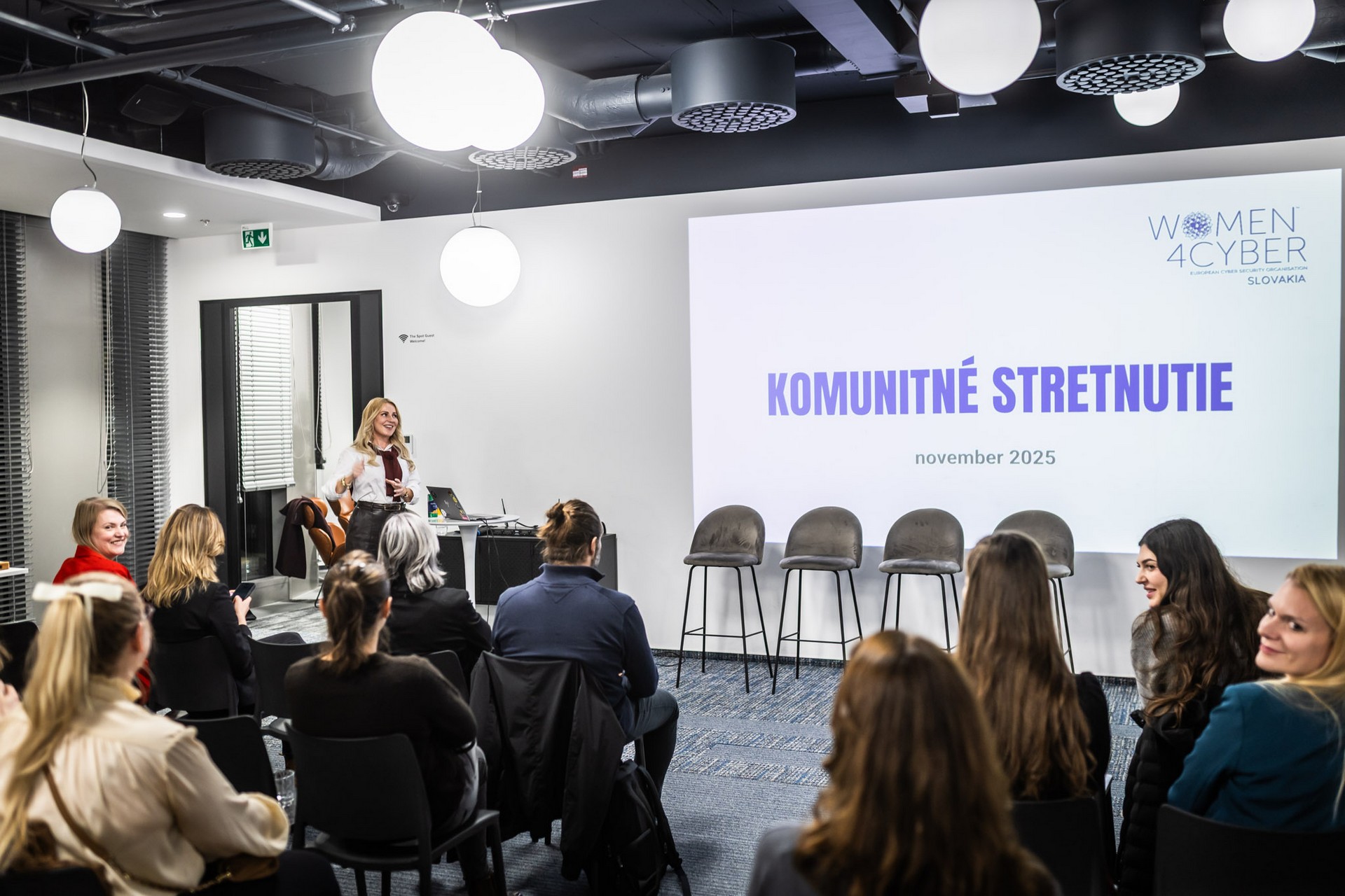 Úvodného slova sa ujala naša Martinka Lisická. Bezprostredne a úprimne nám pripomenula, ako celá táto myšlienka vznikla. Rozprávala o tom, aké dôležité je mať priestor, kde ženy z oblasti kybernetickej bezpečnosti môžu rásť, spájať sa a cítiť, že niekam skutočne patria.